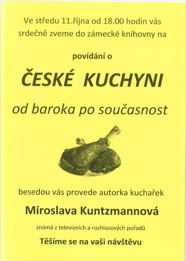 Ve středu 11.října od 18:00 hodin srdečně zveme do zámecké knihovny na povídání o české kuchyni od baroka po současnost.