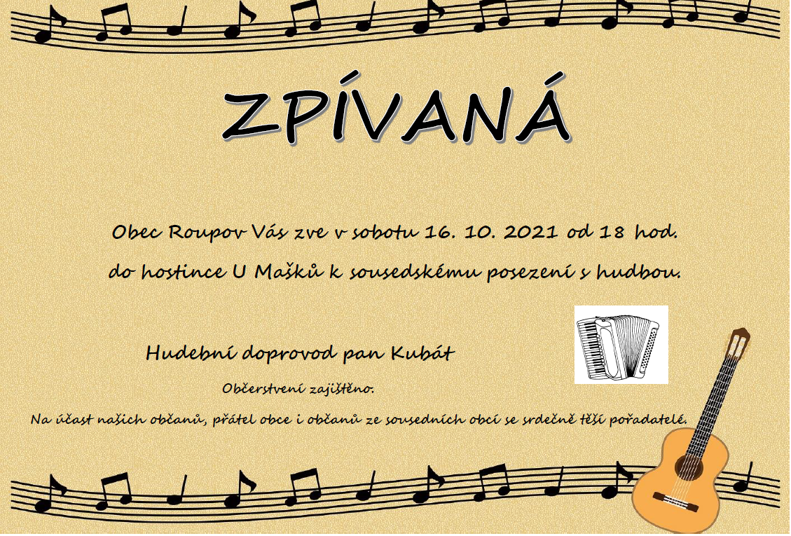 Aktuální informace - Zpívaná v Roupově 16.10. 2021